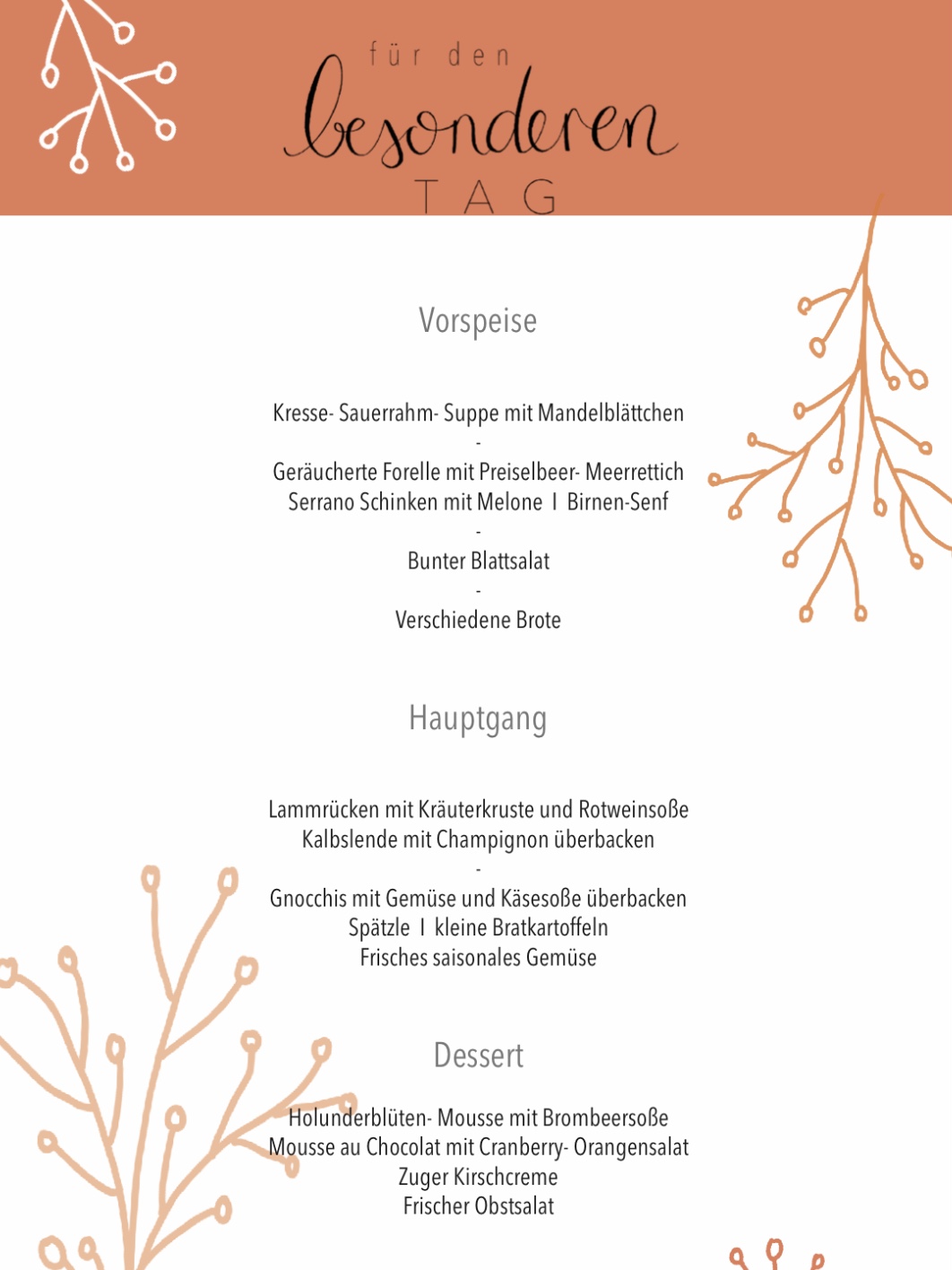 für den besonderen Tag mit allen Sinnen genießen Selbstverständlich könnt ihr aus unserer Menükarte euer Menü zusammenstellen.